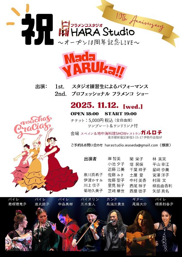 2025年11月12日(水)祝 フラメンコスタジオ HARA Studio ~オープン10周年記念LIVE~